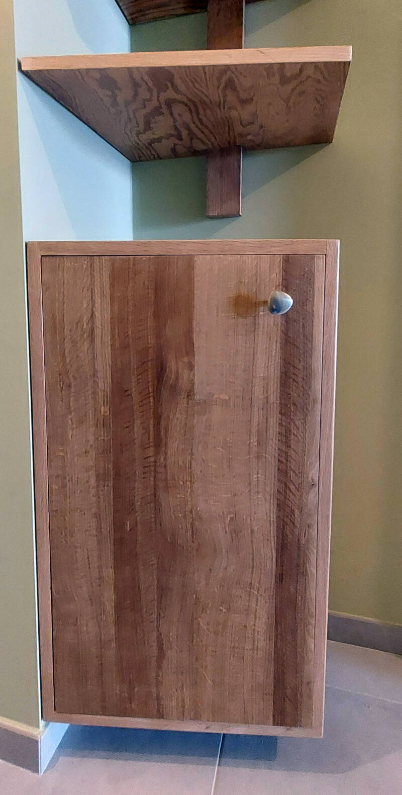 Les autres éléments sont composés d’un assemblage de bois majoritairement en chêne, sélectionnés pour leur cohérence visuelle et leur stabilité.