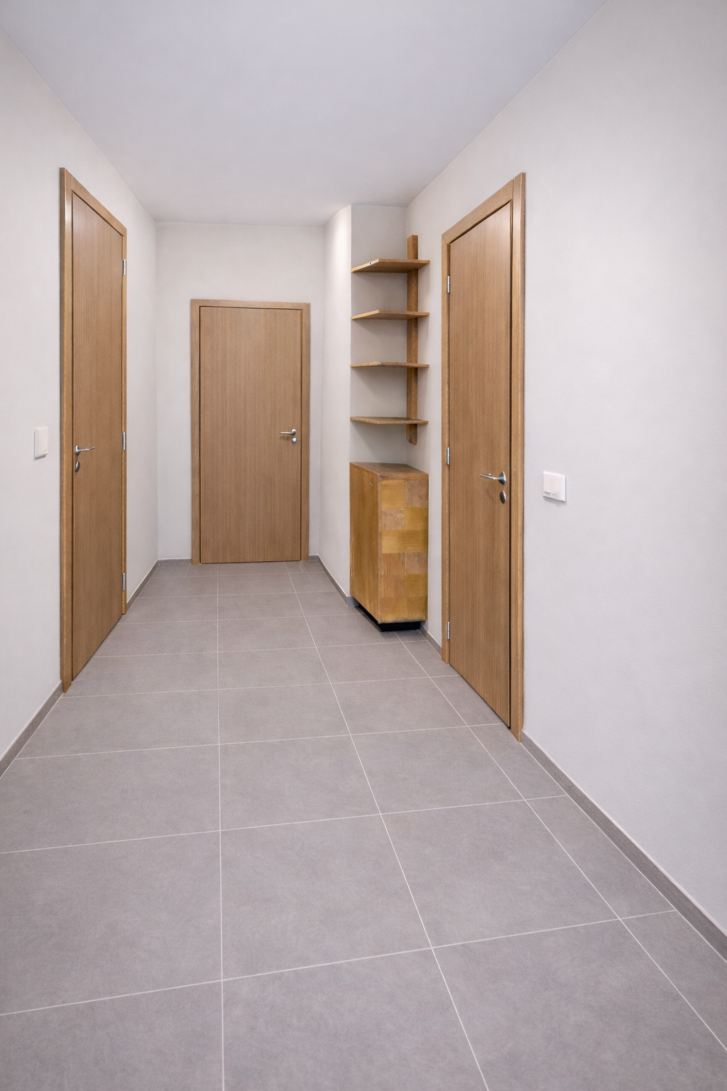 Le souhait du client était de conserver une atmosphère sobre, presque minimale, tout en apportant une présence matérielle plus chaleureuse.